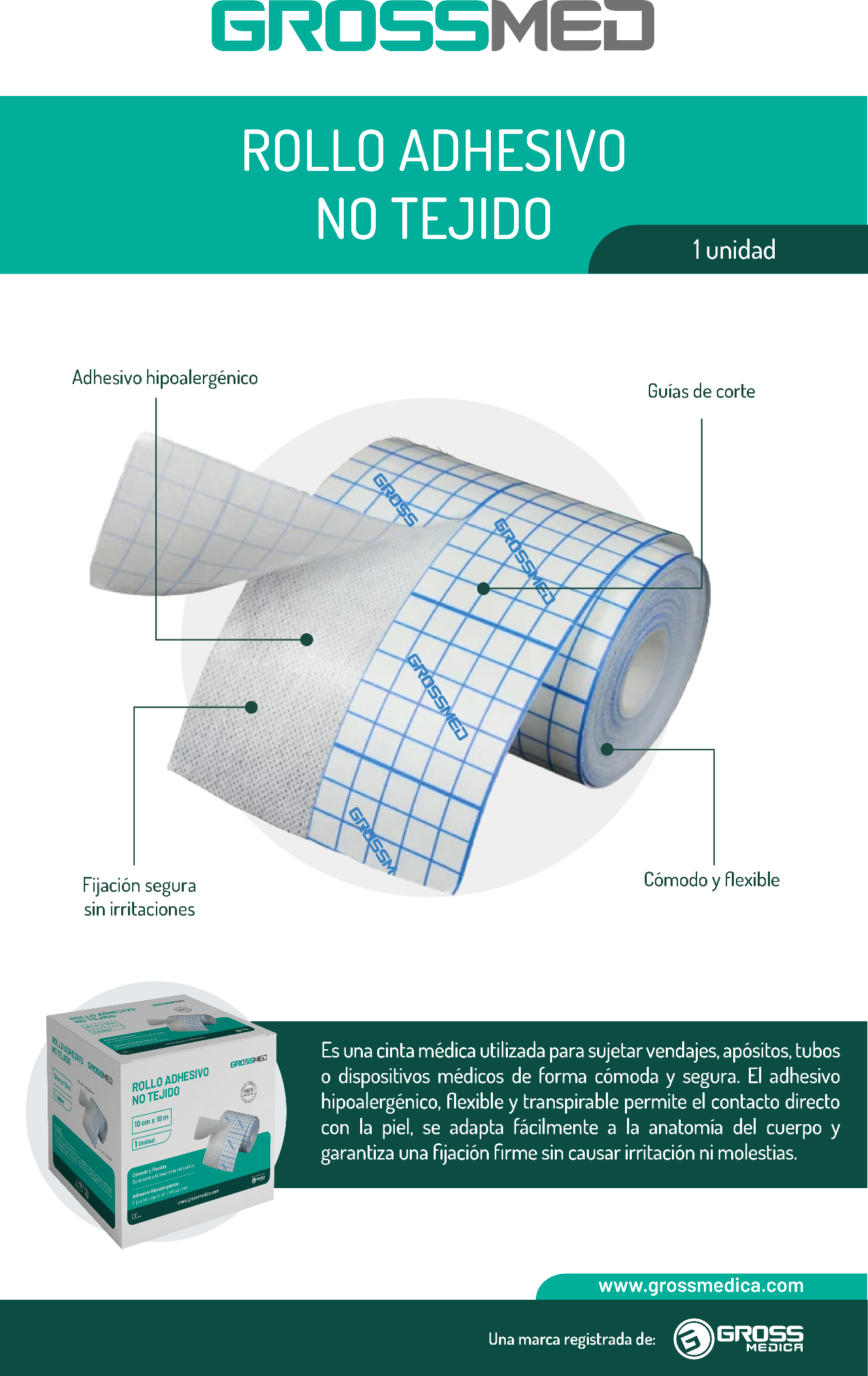 Rollo Adhesivo No Tejido 2.5 cm X 10 mts - Unidad - GROSSMED