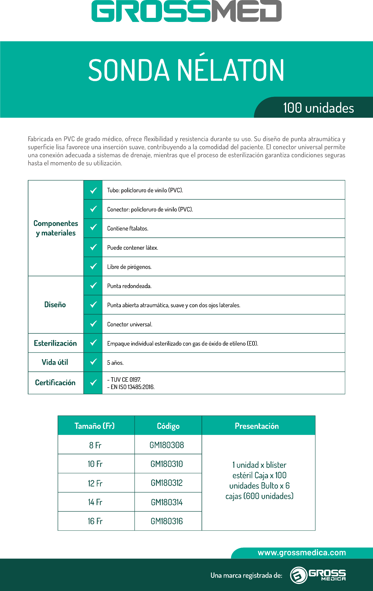 Sonda Nelaton de PVC - Tipo Estándar 16 Fr (E) - Caja X 100 Unidades - GROSSMED